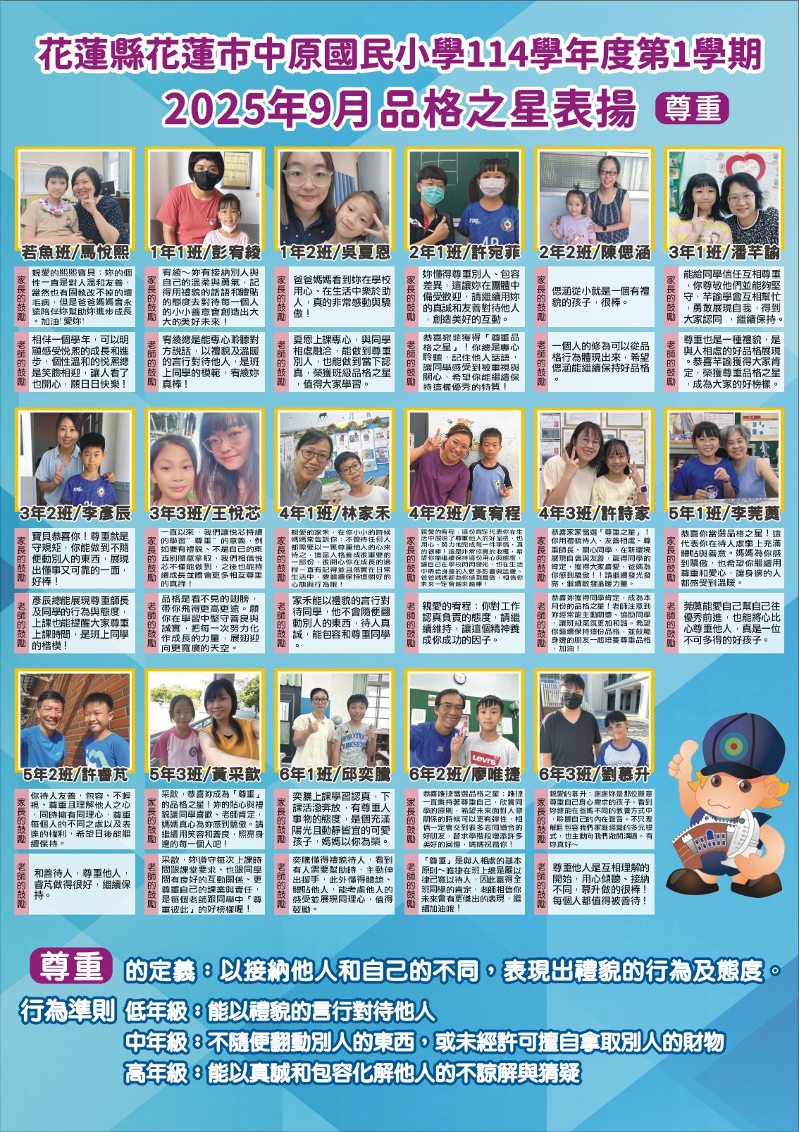 114 學年度 9 月品格之星-尊重