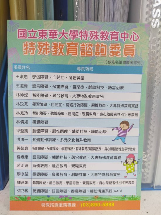 檢送 110 學年度第一學期特殊教育諮詢服務流程及宣傳卡片(詳如附件),請轉知所屬教師、輔導人員及家長多加善用諮詢資源,請查照。