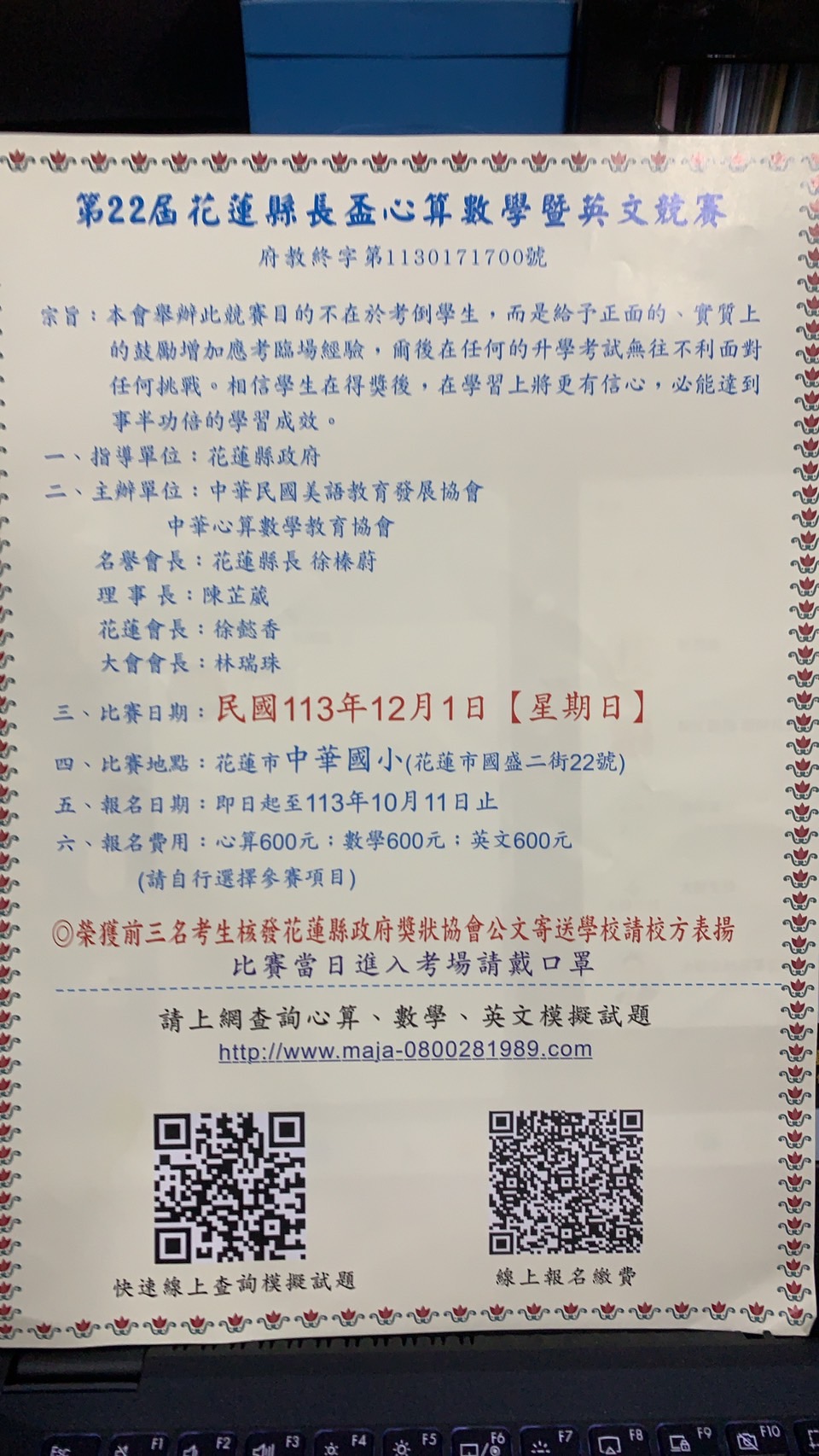 第22屆花蓮縣長盃心算數學暨英文大賽