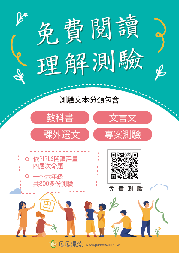 三、「教育生活家」閱讀理解測驗提供各版本國語文教科書文本測驗,完全免費使用,如附件,歡迎教師多加利用 https://www.parents.com.tw/elifer/certificateComprehension