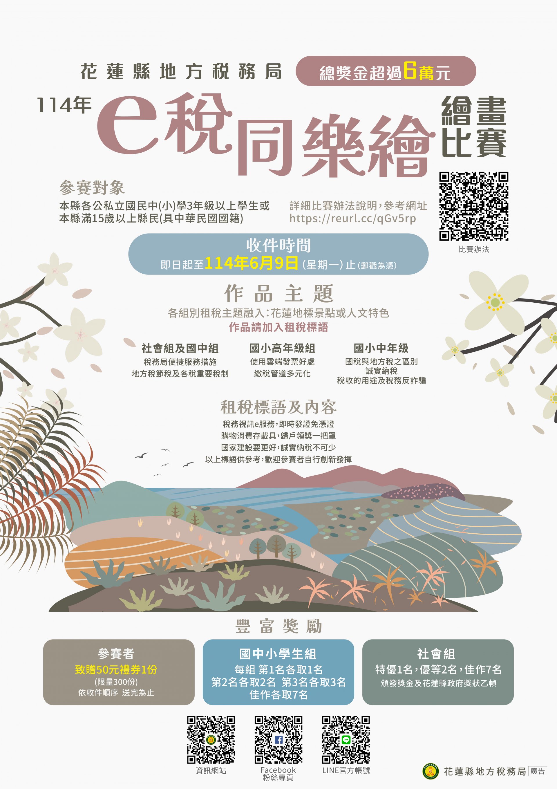 舉辦「e 稅同樂繪」繪畫比賽,收件截止日至本( 114 )年 6 月 9 日(星期一)止,請教職員及學生踴躍參加。