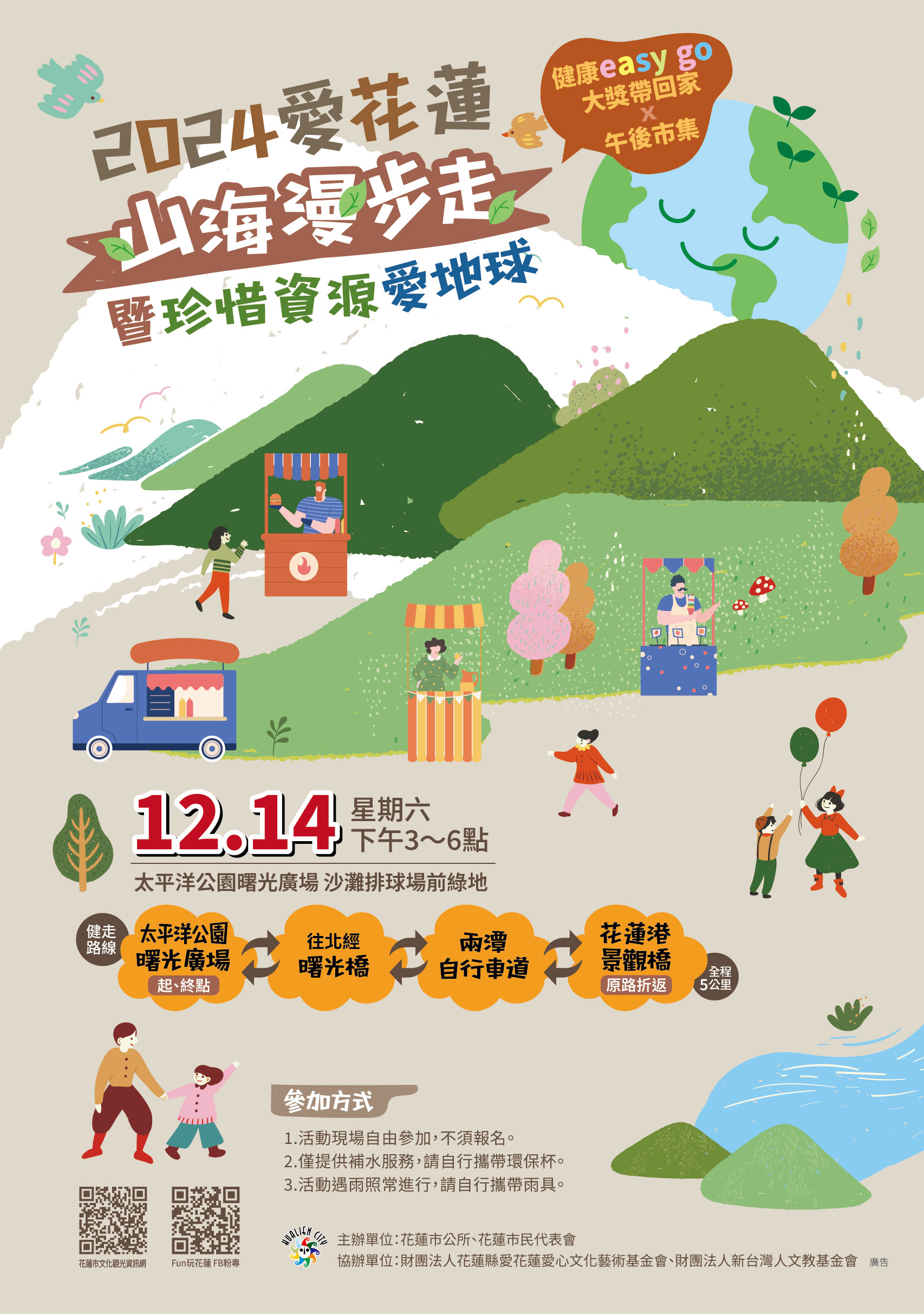 主旨: 花蓮市公所辦理「2024 愛花蓮.山海漫步走暨珍惜資源愛地球」活動,鼓勵學生踴躍參加。