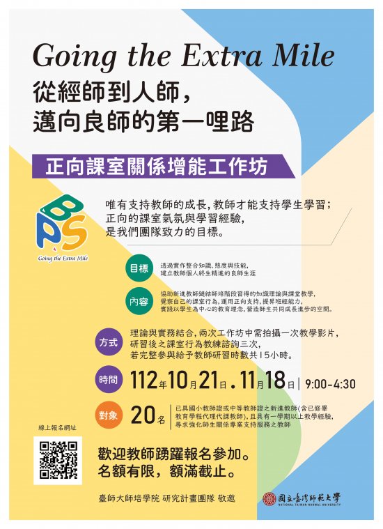 | 二、 | 為協助新進教師運用正向語言與行為技能鏈結師培階段所 知識與課堂實務需求,特邀國立臺灣師範大學特殊教育學系教授及在職教師開設旨揭工作坊。 |