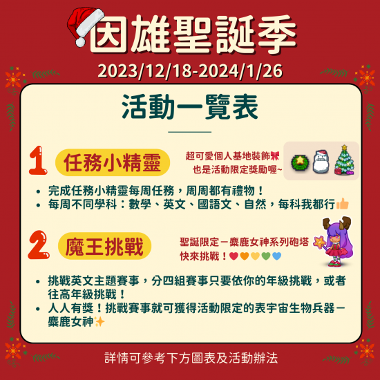 活動於 112 年 12 月 18 日起至 113 年 1 月 26 日止,每日 7 時至 22 時,歡迎全國師生踴躍參加。 詳細活動內容請參閱官網( https://adl.edu.tw/hero/ )及臉書粉絲專頁( https://www.facebook.com/heroj7.tn )。
