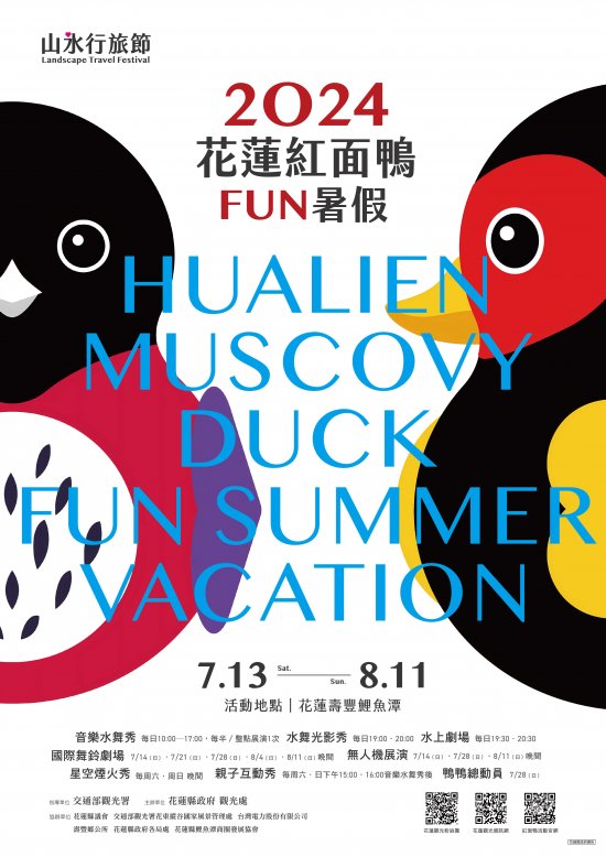 | 主旨: | 花蓮縣政府於鯉魚潭風景區辦理「2024 紅面鴨 FUN 暑假」活動,現場展演內容豐富且有超值禮物,敬邀闔家參與。 |
