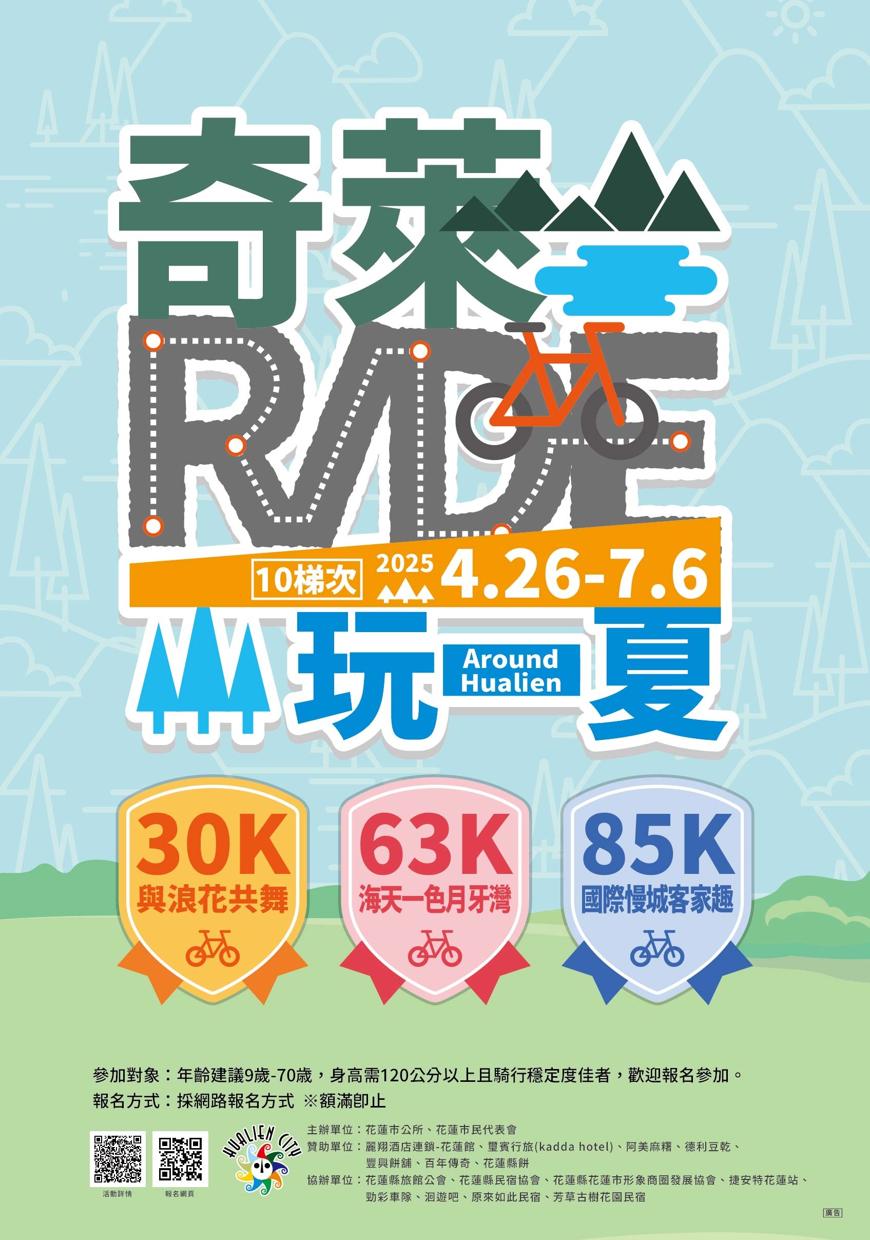 花蓮市公所辦理 2025「奇萊玩一夏」自行車輕旅行活動,歡迎教職員及學生踴躍報名參加。