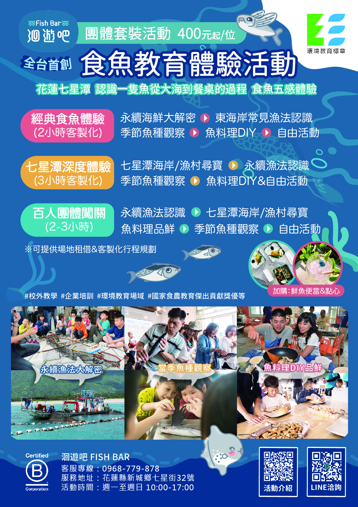 洄遊吧有限公司舉辦之食農教育活動「花蓮七星潭食魚教育體驗活動」宣傳單張。